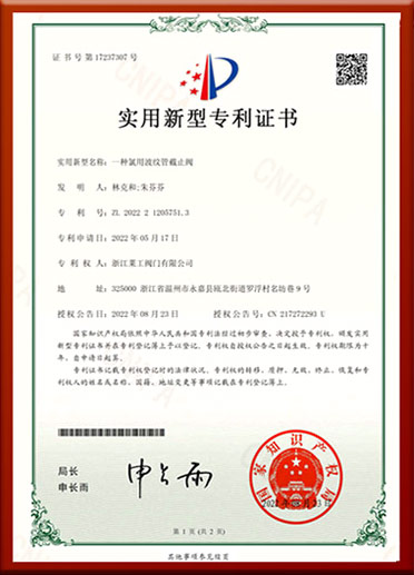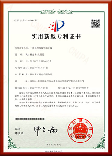 懂片帝閥門通過(guò)了浙江省科技型中小企業認證,做為專業(yè)的波紋管閥門(mén)生產商,我(wǒ)們同時獲得了多項專利認證(zhèng),包括“一種氯用波紋管(guǎn)截(jié)止閥(fá)”,“一種長頸波紋管截止閥”等專利認證。公司目前員(yuán)工(gōng)及中高級職稱人員30餘人。